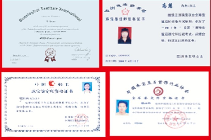 1、學(xué)校統(tǒng)一組織學(xué)生參加美國(guó)國(guó)際寶玉石學(xué)院(GII)、中國(guó)輕工業(yè)聯(lián)合會(huì)中國(guó)輕工珠寶首飾中心(CLIJ)、中國(guó)珠寶玉石首飾行業(yè)協(xié)會(huì)(GAC)及亞洲珠寶聯(lián)合會(huì)(LJDA)等部門組織的寶玉石鑒定師資格證書培訓(xùn)和考試。考試合格者取得相關(guān)部門頒發(fā)的寶石鑒定師資格證書。