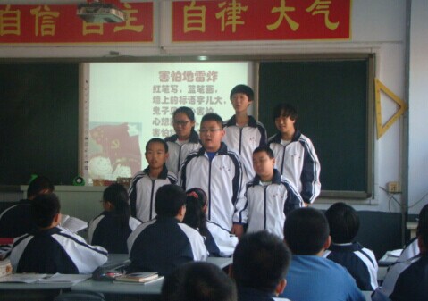 中國教育品牌網訊 “小地雷,鐵西瓜,叔叔懷里抱著它,鬼子夢里也害怕……”,這是10月10日下午周村一中初一二班舉行“童謠傳唱,童心向黨”主題班會的精彩朗誦場景。