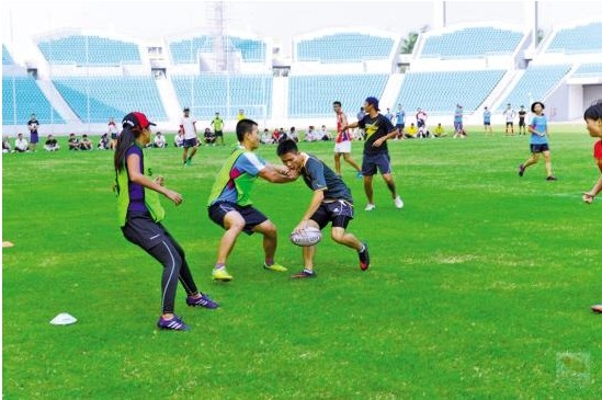 10月18日至19日,觸式橄欖球培訓班在廣州大學城體育中心舉行(見上圖),旨在培養裁判員和教練員,進而達到“教會師傅、培養學生、培育賽事”的目的,約80人參加培訓。學員們表示,觸式橄欖球規則簡單,不強調身體對抗,強調速度、傳球與全隊配合,男女老少皆可參與。