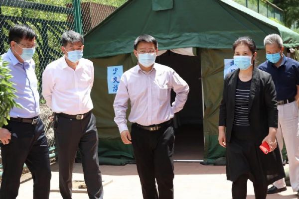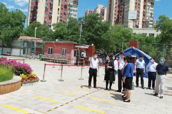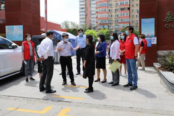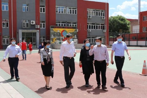 2020年5月27日星期三下午,北京市教委馮洪榮委員、基礎教育一處陳德時副處長、馮雪老師以及朝陽區教委孫迅副主任、基礎教育一科曾廣華科長一同到垂楊柳中心小學松榆校區視察督導返校復課準備。