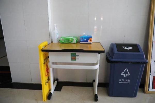 每個班門口設置免洗洗手液、其他垃圾投放桶