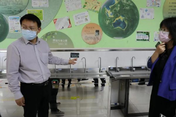 馮委員認真詢問了學生午餐、如廁、洗手、飲水等錯峰管理的安排,特別囑咐了消毒處置要科學,避免因為配比不當對學生身體健康造成影響。