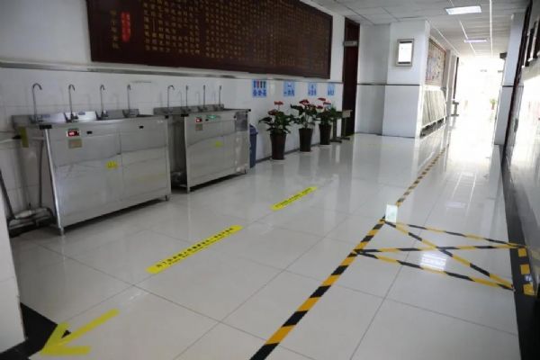 一是:讓每一面墻壁有教育。提示在地面“一米線”設置的基礎上,在樓道、教室櫥窗張貼學生抗疫作品、衛生保健宣傳標語等,在廁所門口墻壁張貼各班如廁安排時間表,讓每一面墻壁會說話、每一塊地面有教育,營造良好環境,加強宣傳引導。