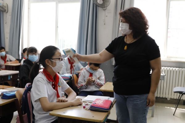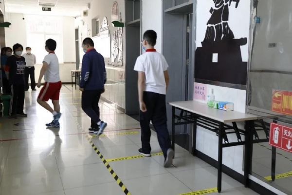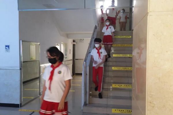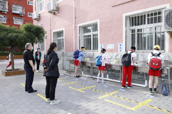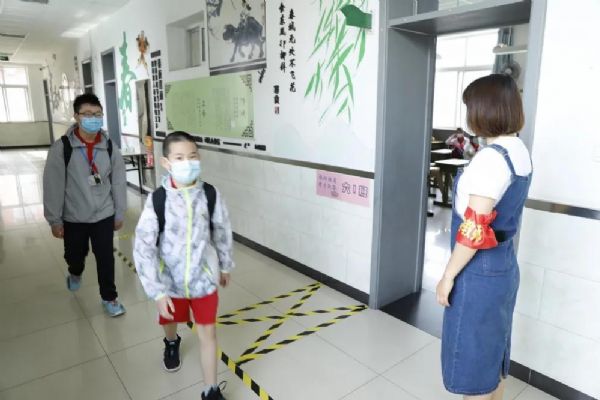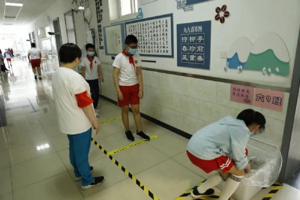 學校依據“以班級為單位閉環式”管理原則,采取分時錯峰的方式,做好管控指引,避免交叉聚集。在大家的共同努力下,學校迎來了六年級295名學生,他們經過體溫監測,身體都非常健康,在執勤老師的引導下,有序排隊洗手,保持一米距離,進入樓道和教室。