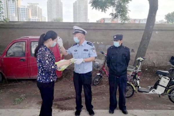 雙井社區交警張警官為學校送防護背心