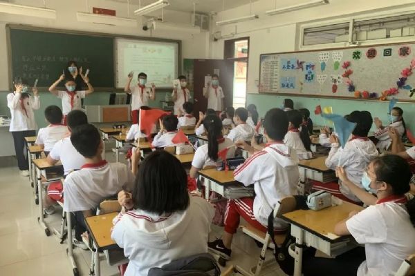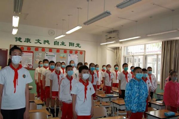 8:00,身著統一校服的學生高唱國歌,開啟了返校復課的“第一課”:校長的講話帶領大家回顧那段特殊的日子、學習英雄的逆行、思考善良的力度、感受祖國的強大;卓越少年研學平臺公益課堂特聘北京佑安醫院疾病預防專家劉穎教授帶領學生學習新冠病毒知識、明確防控要點、提升自護能力;德育主任講解一日生活常規,提出分時錯峰要求;隨后,班主任總結居家學習情況,頒發“五育好少年”獎狀,為學生送上一份特殊的六一節禮物。