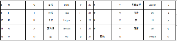 先秦華夏(原始青瓷)字母款與希臘字母結構相同對照圖表譯中文讀音如下:圖15