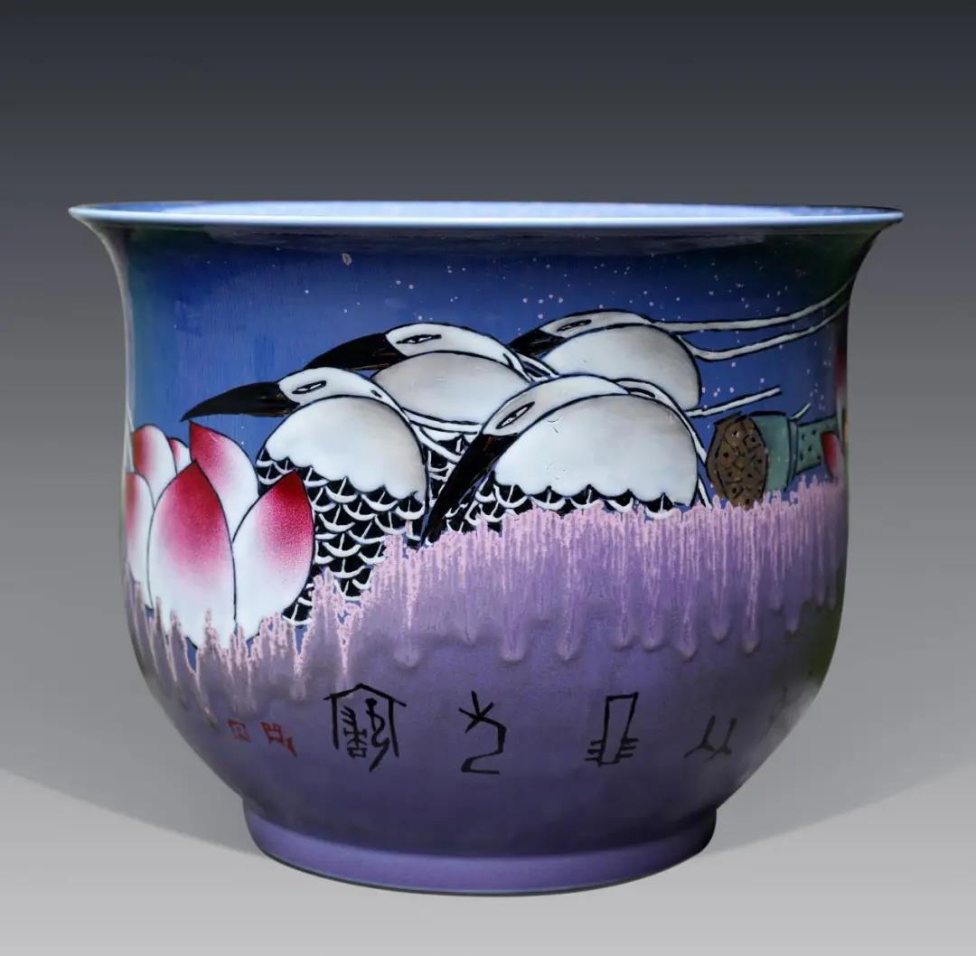 A:那次展出的作品是我十多年的創作心血,有多種創作風格、還有不同的體裁、不同的表現手法,全面呈現出我每一個階段藝術創作的特點,更加立體地展示了我的個人風格和藝術追求,以及對陶瓷藝術的探索和演繹。展出的作品包括景德鎮高溫色釉瓷系列作品、河南鈞瓷系列作品、青花釉里紅系列作品 、洛陽三彩系列作品、河南汝瓷系列作品和龍泉青瓷系列作品等,也有我的部分創作手稿,展示了我多年的藝術探索軌跡。