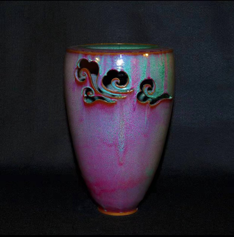 不想,這件獨(dú)特的作品,成為劉志鈞鮮明創(chuàng)作之旅的起點(diǎn)。再后來,他又拜師著名陶瓷大師張守智、“中國陶瓷泰斗”楊文憲等,并成為“鈞瓷泰斗”晉佩章的關(guān)門弟子。很長一段時(shí)間,他心無旁騖,專心制瓷,在業(yè)界逐漸“小有名氣”。