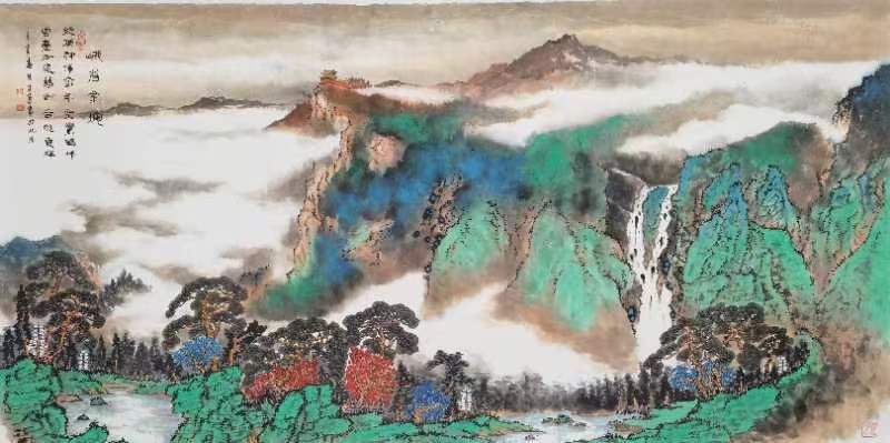 5.中國傳媒大學博士生導師,金妹教授評論:子默在繼承傳統青綠色彩裝飾性的同時,把它與筆墨相結合,實現了色彩的當代轉換,創新了山水畫的表現。他的繪畫呈現了畫家一種嚴謹、精致的文化態度。