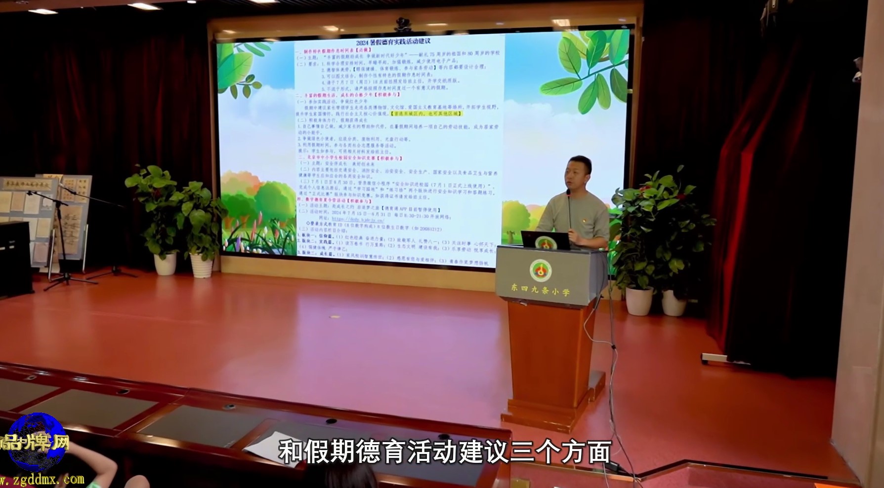 接下來,學校衛生李老師、體育齊老師和大隊輔導員張老師從假期健康生活、假期運動和假期德育活動建議三個方面,將學校的重要提示和指導和全體同學進行分享。