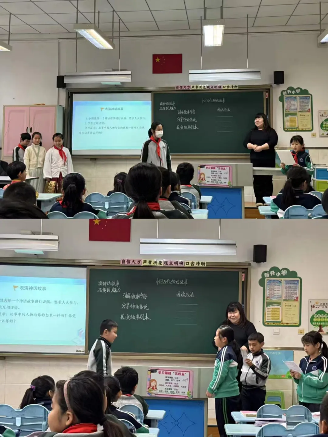 四年級(jí)師生共同閱讀了《中國(guó)古代神話故事》一書(shū)。交流中,同學(xué)們通過(guò)自己生動(dòng)地演繹,將一幕幕神奇的故事搬上舞臺(tái),展示在大家面前。共同體會(huì)古人對(duì)天地萬(wàn)物的美好想象和樸素純真的愿望,感受著古人留給我們的寶貴文化遺產(chǎn)。