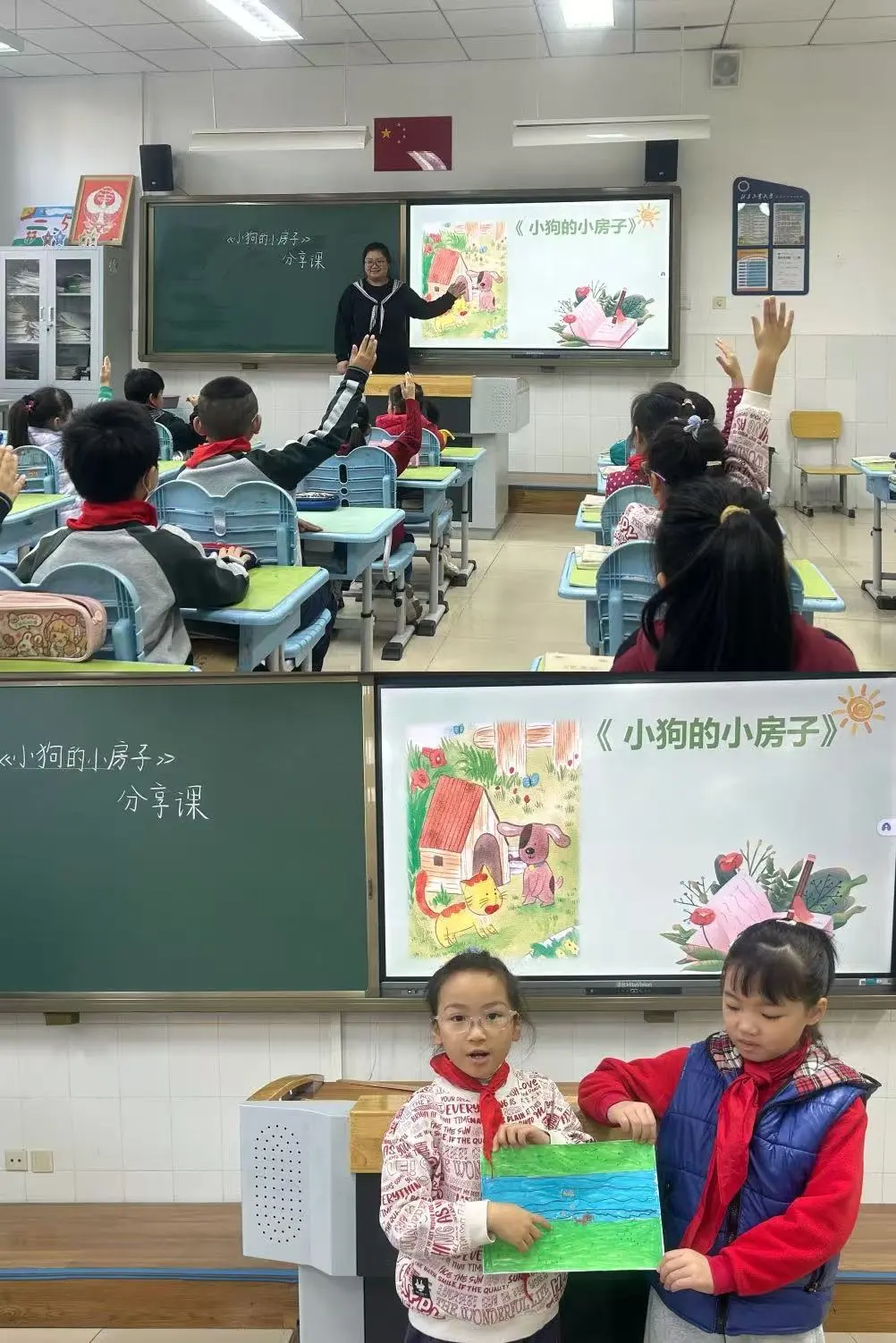 二年級(jí)語(yǔ)文教師和同學(xué)們一同走進(jìn)童話故事,共同閱讀了《小狗的小房子》這本書(shū)。分享課上,同學(xué)們暢所欲言,不僅分享了積累的好詞佳句,還充分表達(dá)了自己對(duì)小貓和小狗的看法,在教師的引領(lǐng)下,以小貓和小狗的行為為參照,學(xué)會(huì)了朋友間該如何相處,體會(huì)到友情的可貴。