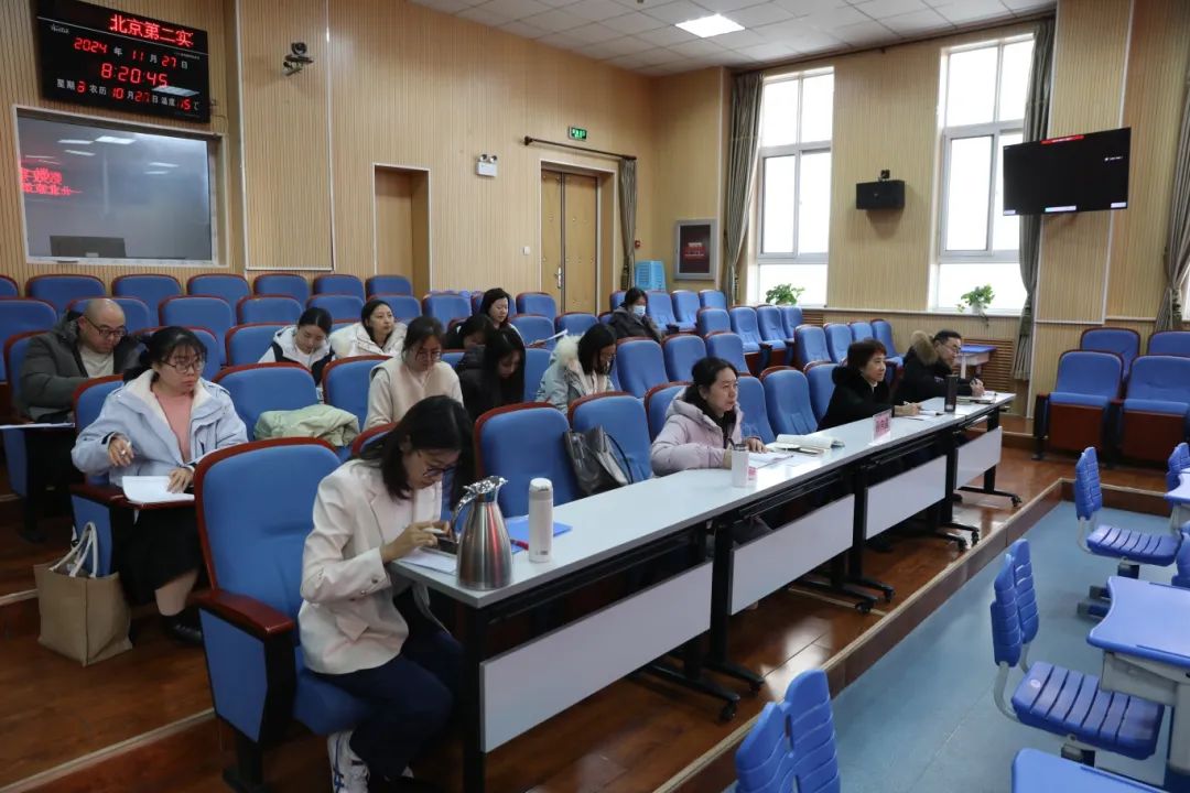 2023年5月教育部印發《基礎教育課程教學改革深化行動方案》,在重點任務“專業支撐與數字賦能行動”中提出推進數字化賦能教學質量提升,要求構建數字化背景下的新型教與學模式,助力提高教學效率和質量。為深入貫徹基礎教育改革方案,2024年11月28日上午,北京第二實驗小學大興實驗學校開展了以“數字賦能促學,精研課堂提質”為主題的校本教研暨“青年教研員成長營”送教助研活動,參加本次活動的有大興區小學數學教研員孫向晶老師、成長營學員、北京第二實驗小學大興實驗學校副校長姚林濤、數學學科指導專家王明蘭老師及全體數學教師。