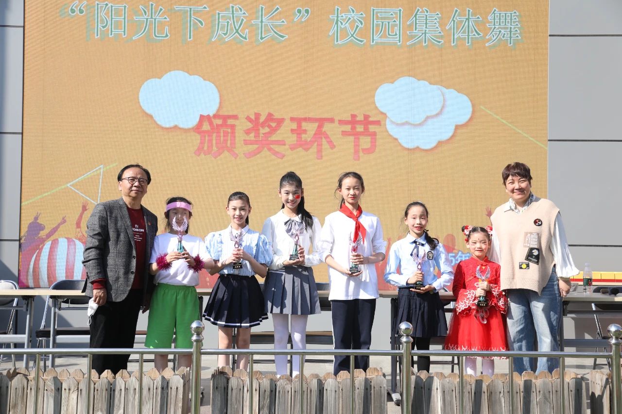 最終19個(gè)班級(jí)舞蹈中六1班、二1班、五3班取得了一、二、三等獎(jiǎng)的優(yōu)異成績,王鳳嶺校長為獲獎(jiǎng)班級(jí)頒獎(jiǎng)并合影留念。