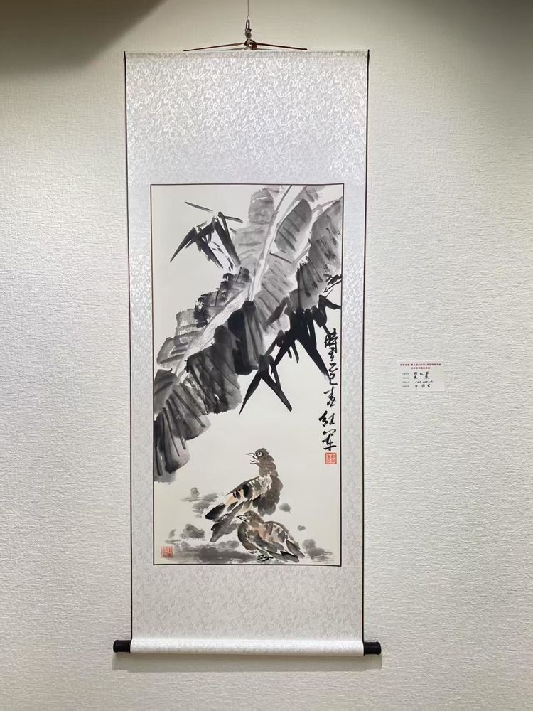 畫家時紅軍 受邀參加筑夢絲路·第七屆(2025)--中國傳統書畫日本東京國際美展,《芭蕉》作品展覽現場。