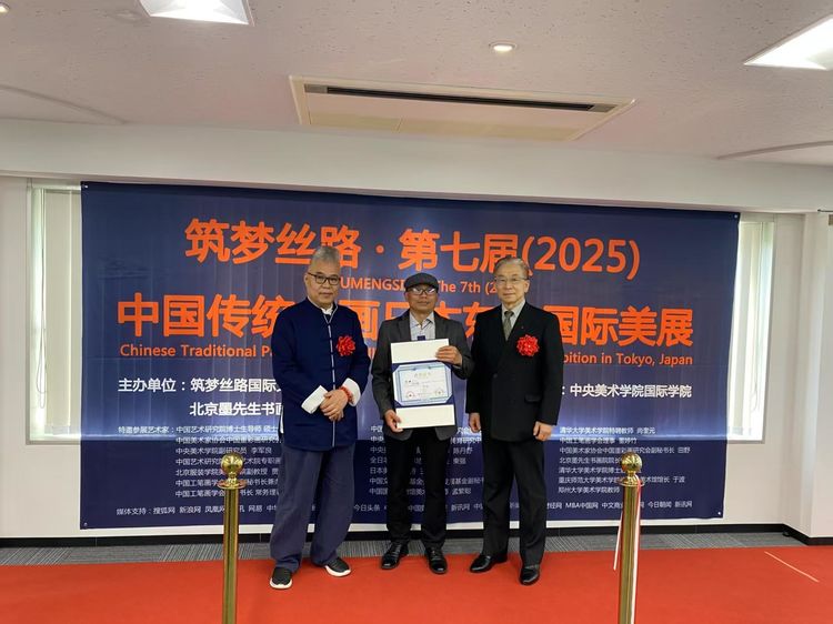 2025年其《安居樂業》組畫在日本筑夢絲路國際藝術大展折桂,評審團盛贊"以水墨重構植物與靈鳥的時空對話"。更難得者,其所藏明代篆刻宗師文彭傳世印章,經三十年潛心研摹,將文人篆刻的"刀筆相生"之道化入丹青,開創"金石入畫"新境。