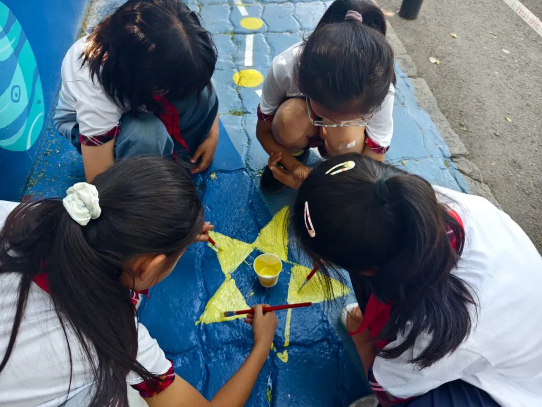 為落實北京市兒童友好城市建設要求,打造安全、溫馨的通學環境,豐臺區鼓勵全區各中小學校與交通部門、街道社區密切配合,積極探索以彩化、美化“學安路”為載體,發動師生開展創意彩繪實踐活動,繪制出展現校園文化特色、傳遞教育愛與溫情的“彩色學安路”。