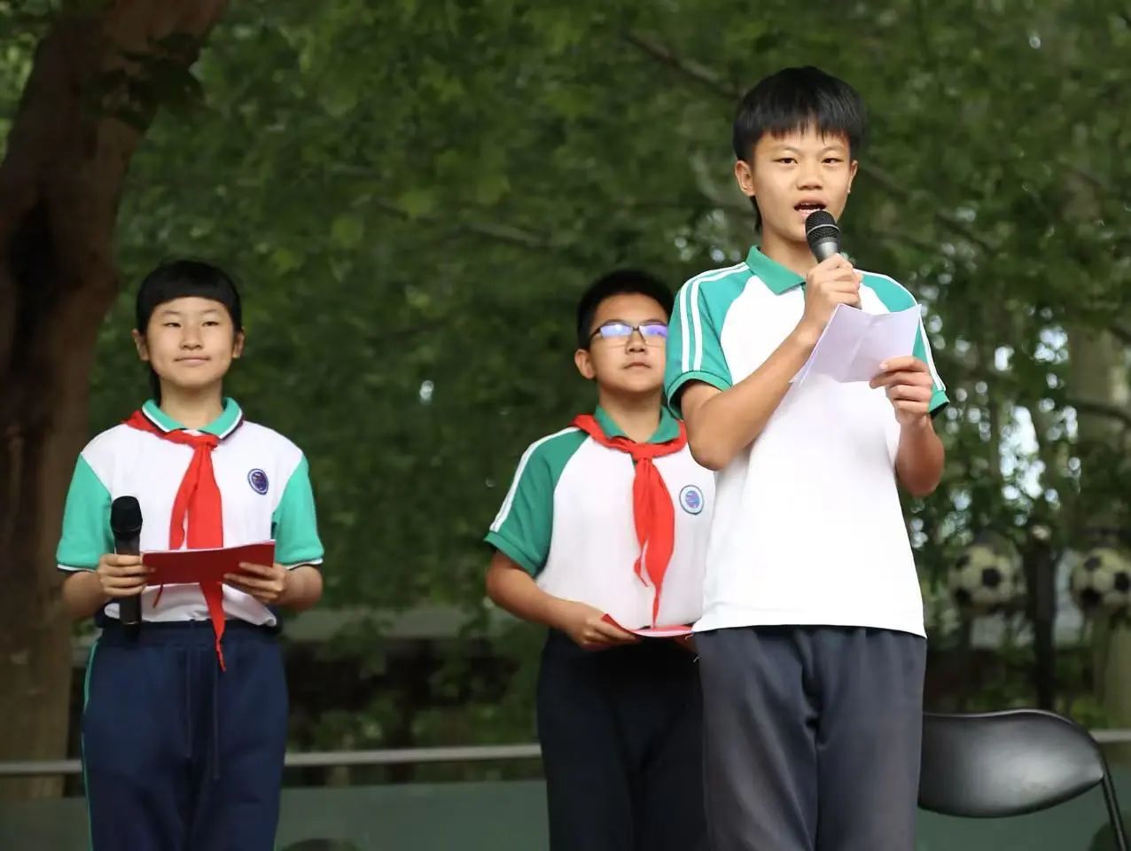 三年級方陣如破土而出的幼苗,沐浴春光茁壯成長;似初升朝陽,閃耀著奪目光芒。他們用響亮口號喊出壯志豪情,以燦爛笑容傳遞必勝信念。今日賽場,他們將以汗水為墨,在青春畫卷上書寫拼搏華章,用團結協作鑄就榮耀豐碑。