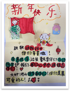活動(dòng)中,少先隊(duì)員們紛紛行動(dòng)起來(lái),用多彩的畫(huà)筆、質(zhì)樸的文字和真實(shí)溫暖的祝福,向邊海防致敬,與最可愛(ài)的人緊緊相連。