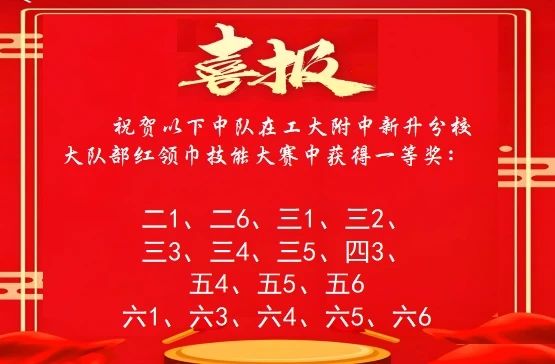 經(jīng)過(guò)激烈地角逐,比賽結(jié)果終于揭曉。以下中隊(duì)成績(jī)脫穎而出,榮獲少先隊(duì)系紅領(lǐng)巾比賽一等獎(jiǎng)。這些中隊(duì)整體精神風(fēng)貌出色,操作規(guī)范,展現(xiàn)了紅領(lǐng)巾的風(fēng)采。