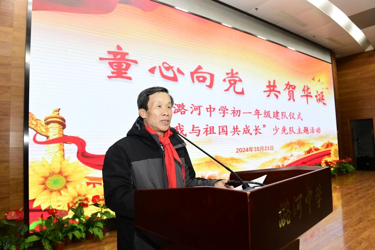 謝宏春副校長代表潞河中學(xué)黨委宣讀《關(guān)于在初一年級(jí)成立少先隊(duì)并聘請輔導(dǎo)員的決定》。