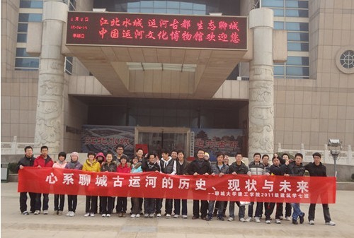 有著悠久歷史,曾經給東昌府區帶來繁榮與名勝的京杭大運河,歷經時代變更如今有著怎樣的風貌?是否已經從明清時代的衰落中恢復元氣呢?帶著這些疑問建筑工程學院11級建筑學班全體成員于2012年1月18日舉辦古運河歷史、現狀與保護的調研活動。