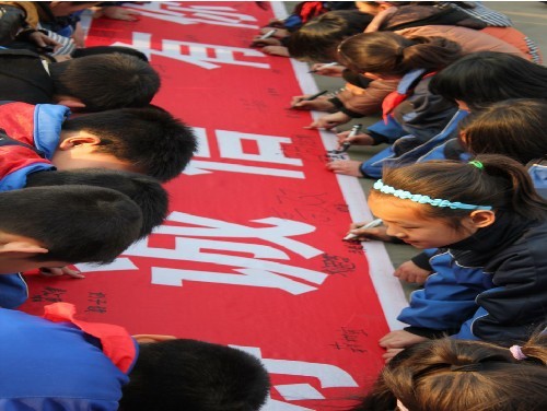 活動分三部分:首先,少先隊員代表宣讀倡議書,反思現(xiàn)實生活,突出誠信教育的重要性和急迫性;然后進行了宣誓儀式——“共鑄誠信,有你有我,創(chuàng)建和諧校園!”的口號聲在校園上空回蕩;最后,全體少先隊員以中隊為單位進行了簽名。
