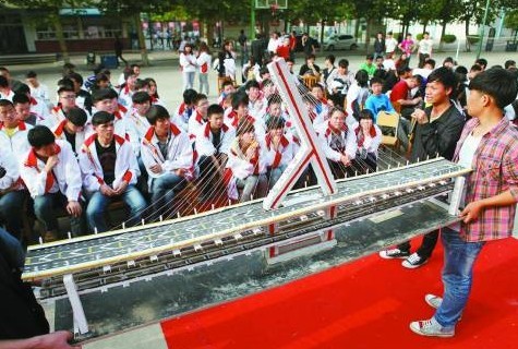 實踐出真知(圖為學生展示設計制作的橋梁模型)