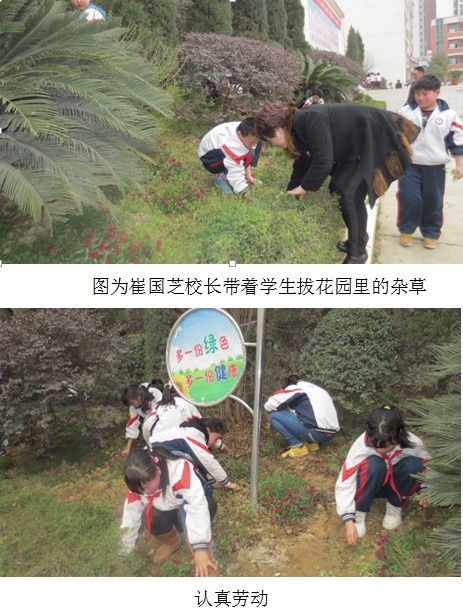 當日下午,在校長崔國芝的指揮下,在各班主任的帶領下,學生們手持鋤頭、火鉗等勞動工具,來到校園的花園里,為花園里的每棵小樹苗蓋土,為每株小花“凈身”。盡管師生累得汗流浹背,但大家臉上堆滿微笑,感受著勞動帶來的快樂。
