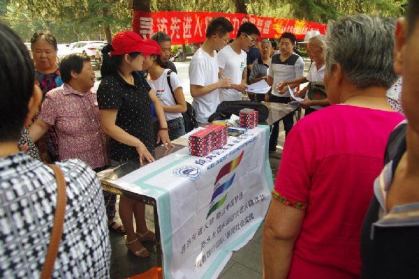 活動中間,汽院青春踐行團隊舉行了橫幅簽字活動、問卷調查和有獎問答活動,并與現場觀眾互動,將活動氣氛推向高潮。在有獎問答環節,汽院青春踐行團隊隊員們向市民提問了一些如“南水北調是何年何月完工通水”的基本常識,答對后的市民可以領取一個由愛十堰社區贊助的環保袋,并到橫幅上簽字,掃描青春踐行團隊的公眾微信,最后可以再獲得一份禮品。汽院青春踐行團隊介紹,他們此次活動的目的是為市民普及南水北調常識,幫助市民全面了解南水北調并且學習南水北調水源區的先進人物事跡,以此來歌頌那些在南水北調過程中辛勤付出的工作人員和移民。