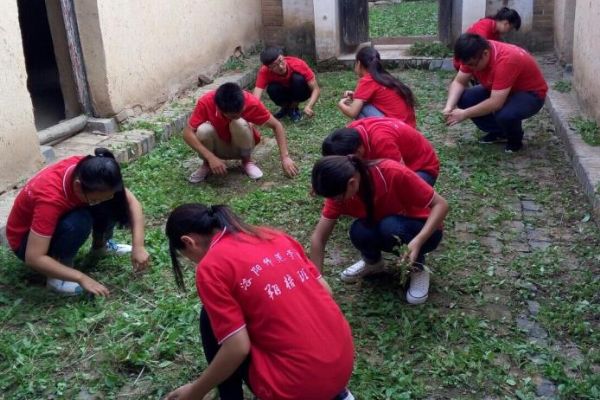 翔梧班同學走進李翔梧烈士的故居,看到李翔梧同志的遺像,都自發地向其鞠躬,以表達對其的敬意。院內久無人打掃,早已雜草叢生,同學們紛紛蹲在地上,把故居院落內的雜草紛紛清除。蚊蟲雖多,但大家并沒有因此而抱怨,都十分認真的對待。最后,同學們在中高村李氏祠前莊嚴宣誓。