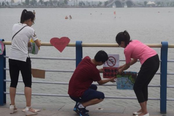 暑假期間的東昌湖是深受市民們喜愛(ài)的地方,東昌湖沿岸每天都是熱鬧的景象。市民們或湖中嬉戲、或釣魚(yú)玩耍、或靠欄閑聊,夏季的東昌湖給人們帶來(lái)無(wú)窮的樂(lè)趣。然而,人們?cè)诒M興游玩的同時(shí)往往容易忽略安全問(wèn)題,對(duì)防止溺水的意識(shí)難免淡化。為積極地服務(wù)社會(huì),提高自身的志愿奉獻(xiàn)精神,讓市民們度過(guò)安全快樂(lè)的假期,志愿者們?cè)跂|昌湖沿岸選取比較明顯適合的地方張貼提前做好的防溺水標(biāo)志,提醒人們時(shí)時(shí)刻刻注意自身的生命安全,謹(jǐn)慎小心,防止溺水事故的發(fā)生。