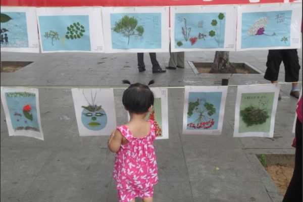 原來,洛陽市周王城廣場內一場特殊的展覽正在舉行,經過觀察記者驚訝地發現展覽中每一幅精美的畫作都是由植物的花、莖、葉或者果實經過巧妙連接組成的。除了小朋友喜歡的卡通人物外,作品中還有代表家園、自然環境等創意作品,引得過往市民紛紛駐足觀賞,更有群眾依依不舍地詢問下次展出時間。