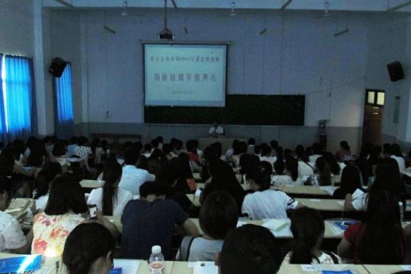 中國教育品牌網訊 8月23日下午,碧江區2015年新招聘教師崗前培訓在銅仁學院繼續教育學院舉行了開班儀式。碧江區教育局黨組書記趙偉成,銅仁學院繼續教育學院院長雷曉軍,銅仁學院繼續教育學院副院長劉延發出席開班典禮,銅仁學院繼續教育學院黨總支書記沈正雄主持,參加此次崗前培訓開班典禮的中小學新教師共152人。