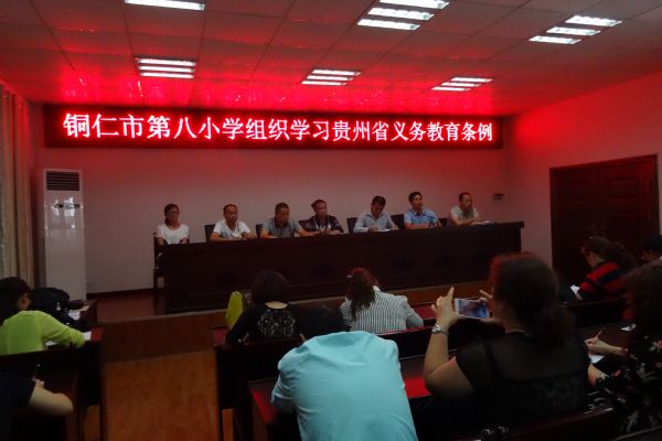 為認真貫徹好《貴州省義務教育條例》,進一步做好條例體制宣傳,2015年9月14日下午,銅仁市第八小學結合學校工作實際,組織全體教職工認真學習了《貴州省義務教育條例》,石順副校長詳細解讀了“條例”亮點。