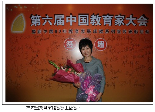 2009年11月19日,李潔博士出席了第六屆中國(guó)教育家大會(huì),作為貴賓代表,李潔博士再次受到全國(guó)政協(xié)副主席阿不來(lái)提•阿不都熱西提、十屆全國(guó)政協(xié)副主席張懷西、十屆全國(guó)人大副委員長(zhǎng)顧秀蓮等領(lǐng)導(dǎo)的接見(jiàn),并在主席臺(tái)就座,再次登上北大百年講堂的講臺(tái)。此次大會(huì),李潔博士被評(píng)為“百名為新中國(guó)教育做出突出貢獻(xiàn)的教育家”和“2009中國(guó)民辦幼兒教育十大杰出人物”,同時(shí)當(dāng)選首屆中國(guó)教育發(fā)展聯(lián)盟副主席。受大會(huì)組委會(huì)委托,11月20日上午,李潔博士在華都飯店多功能廳舉行了專題報(bào)告會(huì):眷懷報(bào)效祖國(guó)赤誠(chéng)之心,鑄造中國(guó)幼教國(guó)際品牌。