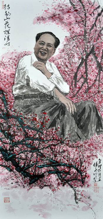 今年年初,新春伊始,王德水先生獨自在畫室創作完成了力作,人物畫:毛澤東主席詩意《待到山花爛漫時》。毛主席在梅花盛開的時刻“在叢中笑”。讓人可親可敬。