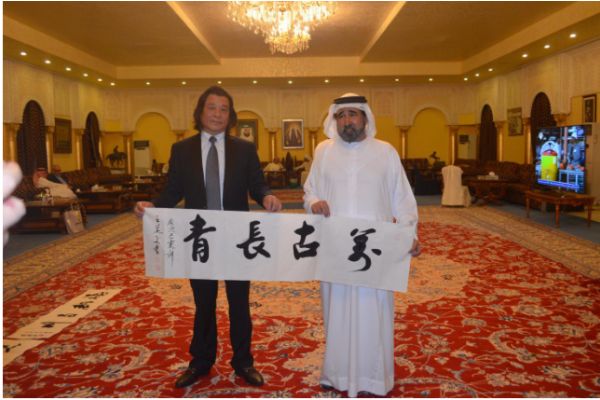 2019 年 2 月 27 日,China 杰出陶瓷藝術家來到阿聯酋拜訪了廣東商會同仁,并受到阿聯酋王子親切地接見,現場在王子會所進行了書法藝術表演,用瓷語書法,促進了中阿文化的互動和友誼。