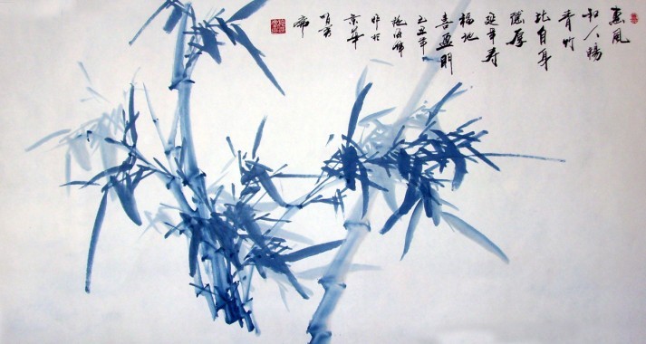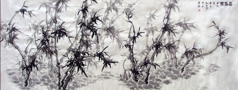 竹,古往今來,名人雅士都喜歡,論竹。晉代王子猷愛竹,說:不可一日無此君耶。所以后世便稱竹為君。鄭板橋一生愛竹、畫竹,在竹中得到精神上極高的享受。特別是蘇東坡曾說:寧可食無肉,不可居無竹。更把竹子的高風亮節,精、氣、神做表率,后人仿之。所以歷代愛畫竹畫家無數,畫竹看似簡單易畫,畫好它卻很難,能畫好竹的畫家不少、但能創造的畫家罕見,能畫大竹、高竹的人不多、但能畫五米以上的高竹更少,主要具備藝術天賦、魄力等多方面因素。