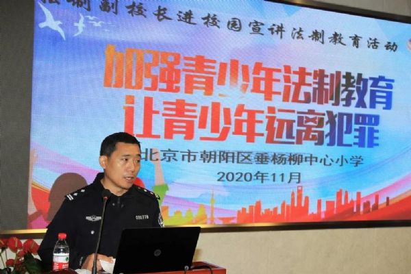 為積極做好法治教育,提高學(xué)生法治意識(shí),營造安全和諧的校園環(huán)境,2020年11月16日垂楊柳中心小學(xué)邀請法制副校長,潘家園派出所祝首川警官走進(jìn)學(xué)校,為全校師生進(jìn)行法制宣講。