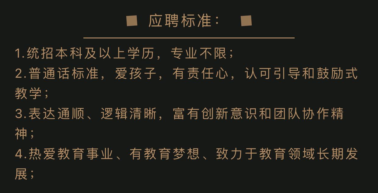 火花思維的老師招聘一共要經(jīng)歷7重關(guān)卡,在他們公開(kāi)招聘老師的啟示中可以看到,招聘要求是必須本科以上學(xué)歷,專(zhuān)業(yè)背景上不做其他額外要求。