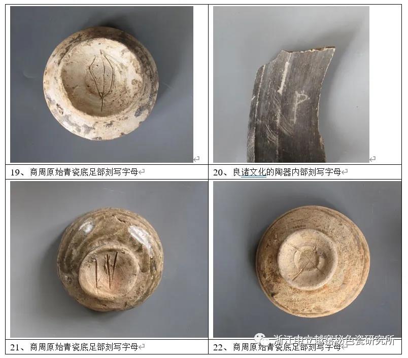 筆者收集先秦陶瓷類古希臘字母造字結構標本研究新發現:八千年前跨湖橋文化至良諸文化時期已有古越先民把字母刻劃在陶瓷器上;夏商周也出現原始青瓷底足、蓋部刻劃相類同“字母”款。華夏先民數千年之間都在應用這些字母文字體系造字結構,至秦代禁用。 1.先秦陶瓷類古希臘字母認定方法,以造字結構為準則 為什么要說,造字結構:文字確認方法,是否符造字結構標準要求檢驗,造字結構標準獲國際共識準則。 先秦華夏陶瓷類古希臘字母造字結構23個,經多位希臘學者鑒定符合希臘字母造字結構標準。而且還有希臘學者認為此類古希臘字母造字結構23個,應該是古希臘人寫的,這說明此字母造字結構標準完全相同,毋庸置疑。 先秦原始青瓷字母款與希臘線形字母對照譯中文讀音,如:示圖2。